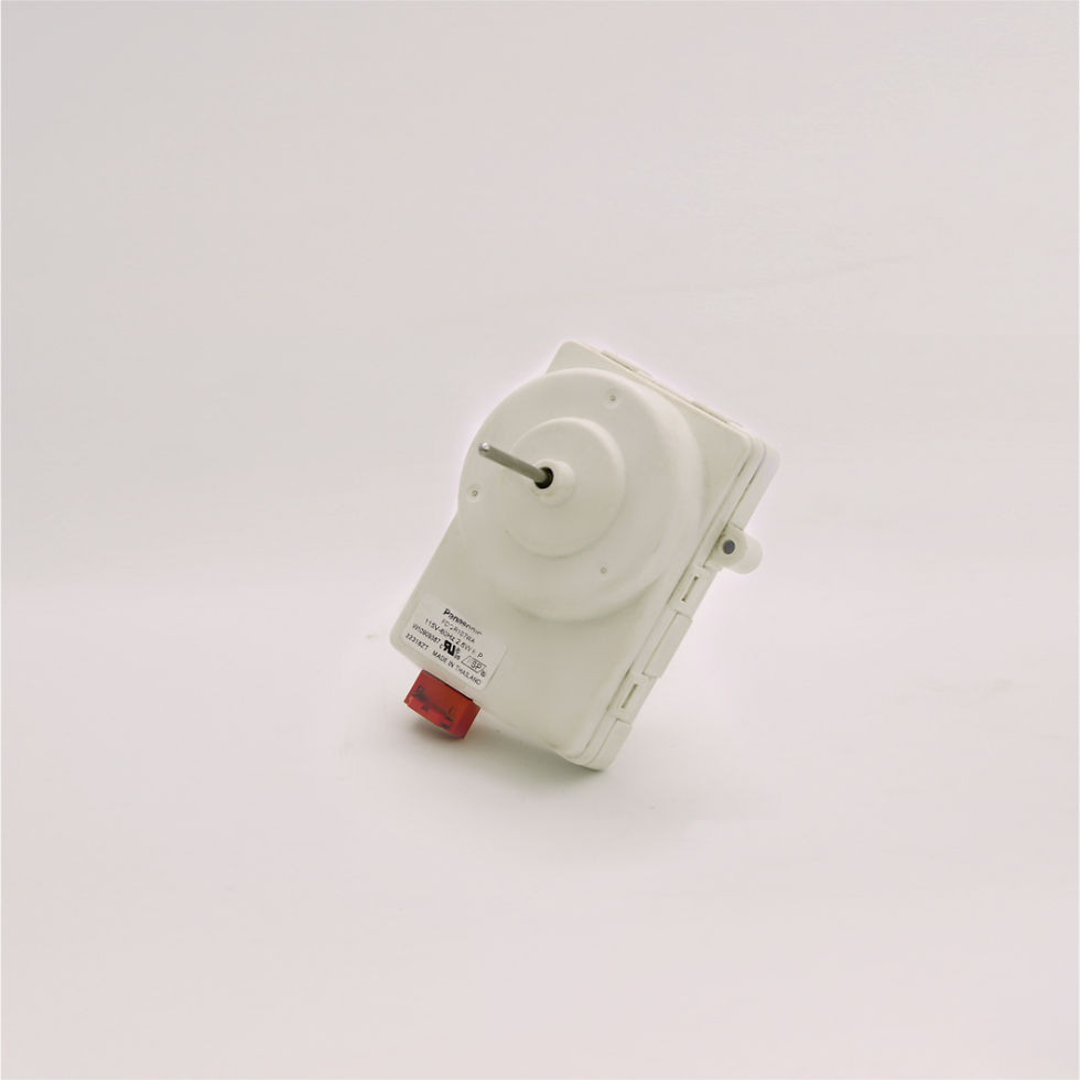 This evaporator fan motor is located on the back of the freezer and circulates air over the refrigerator coil. This coil converts the heat from the refrigerator into cool air, which will then circulate.